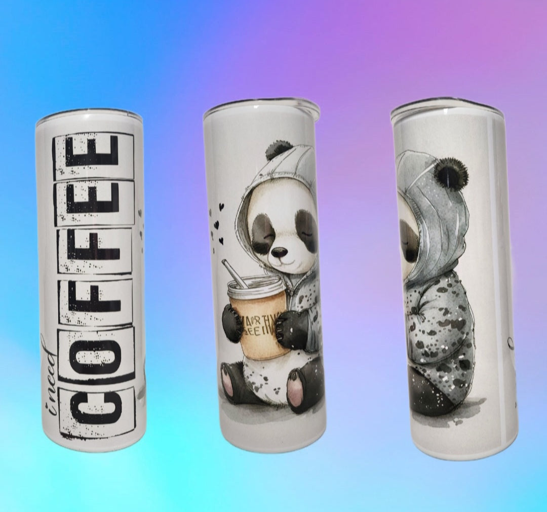 Für alle, die ihren Kaffee mit einem Schuss Humor genießen - der Tumbler mit Kaffee panda Motiv! Halte deinen Kaffee heiß und deine Stimmung hoch mit diesem süßen und praktischen Begleiter. Perfekt für unterwegs oder im Büro. Ein Must-Have für alle Pandaliebhaber!